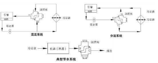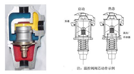 温控阀的温度控制动力来自于阀芯感温包部分——石蜡/黄铜混合物的热胀冷缩,